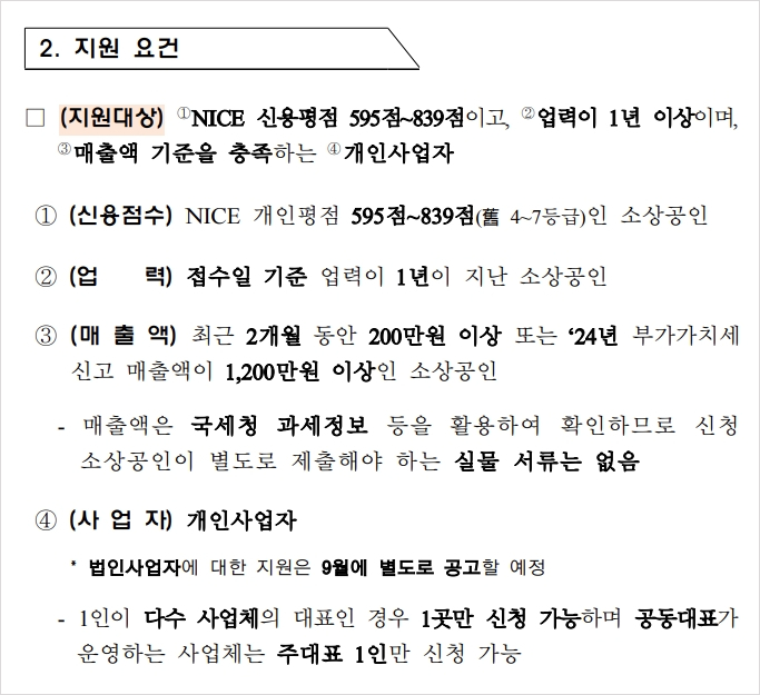 - 사업자등록이 완료된 소상공인 (개인/법인 모두 OK)